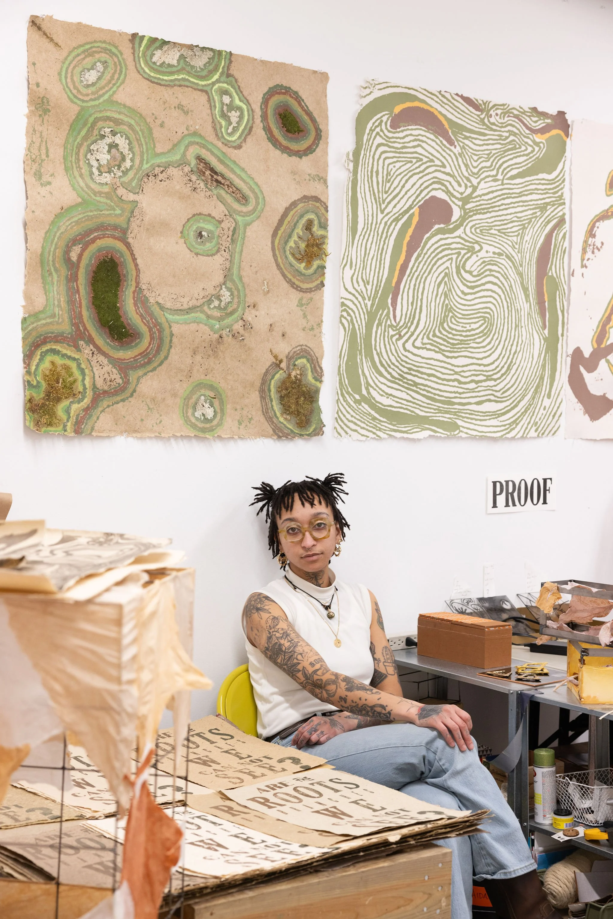 Frierson is the Executive Director of the North American Hand Papermakers organization. Her public programming, education work, and cultural practice has shown up collaboratively in spaces such as: Hyde Park Art Center, Chicago Public Schools, Chicago Park District, Chicago Torture Justice Center, Chicago Art Department, University of Illinois at Chicago Montgomery Ward Gallery, Marwen, Time Being Tattoo, Flower World Tattoo, Dieu Donné, Hook Pottery & Paper, Sitter Studio NYC, Smart Museum of Art, and Penland School of Craft.